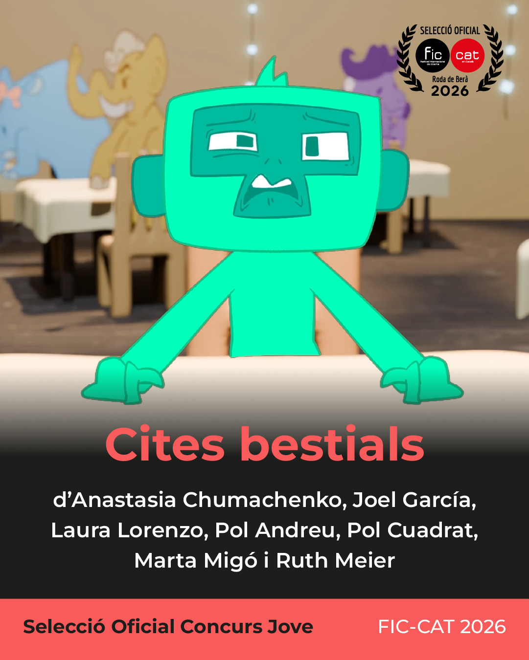 Beast Dates (Cites Bestials), una animació d’Anastasia Chumachenko, Joel García, Laura Lorenzo, Pol Andreu, Pol Cuadrat, Marta Migó i Ruth Meier. Torredembarra (Tarragona).